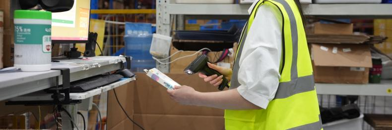l 系统自动匹配中小样组合订单,生成最优分拣路线,分拣员通过 PDA 接收指令,精准取货。